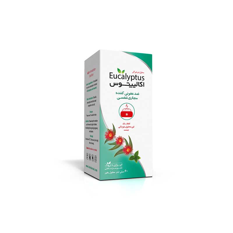 هر 100 میلی لیتر از محلول بخور حاوی حداقل 100 میلی گرم از اسانس اکالیپتوس و 1/1 گرم منتول می باشد.