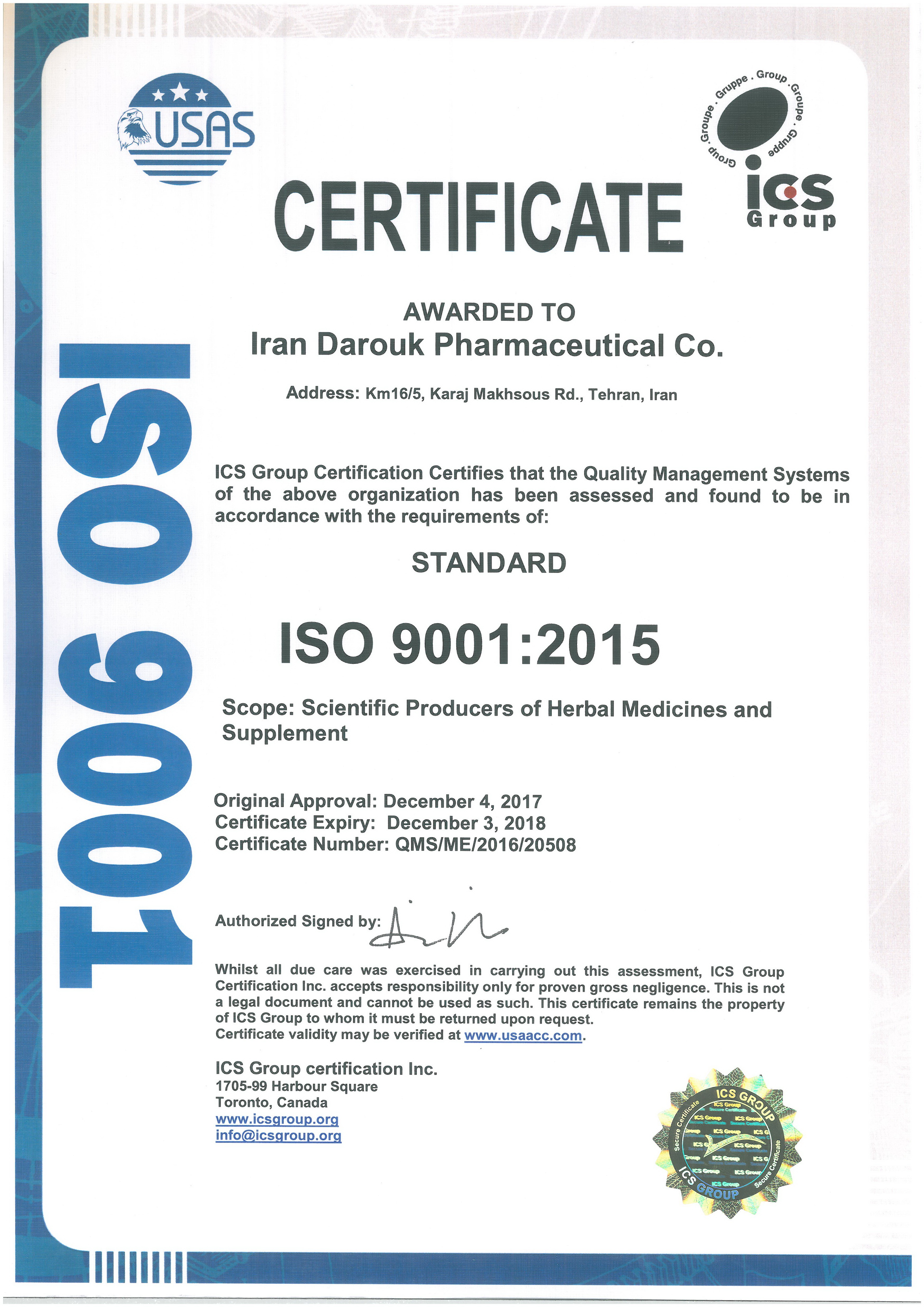 ISO 9001 Certificate